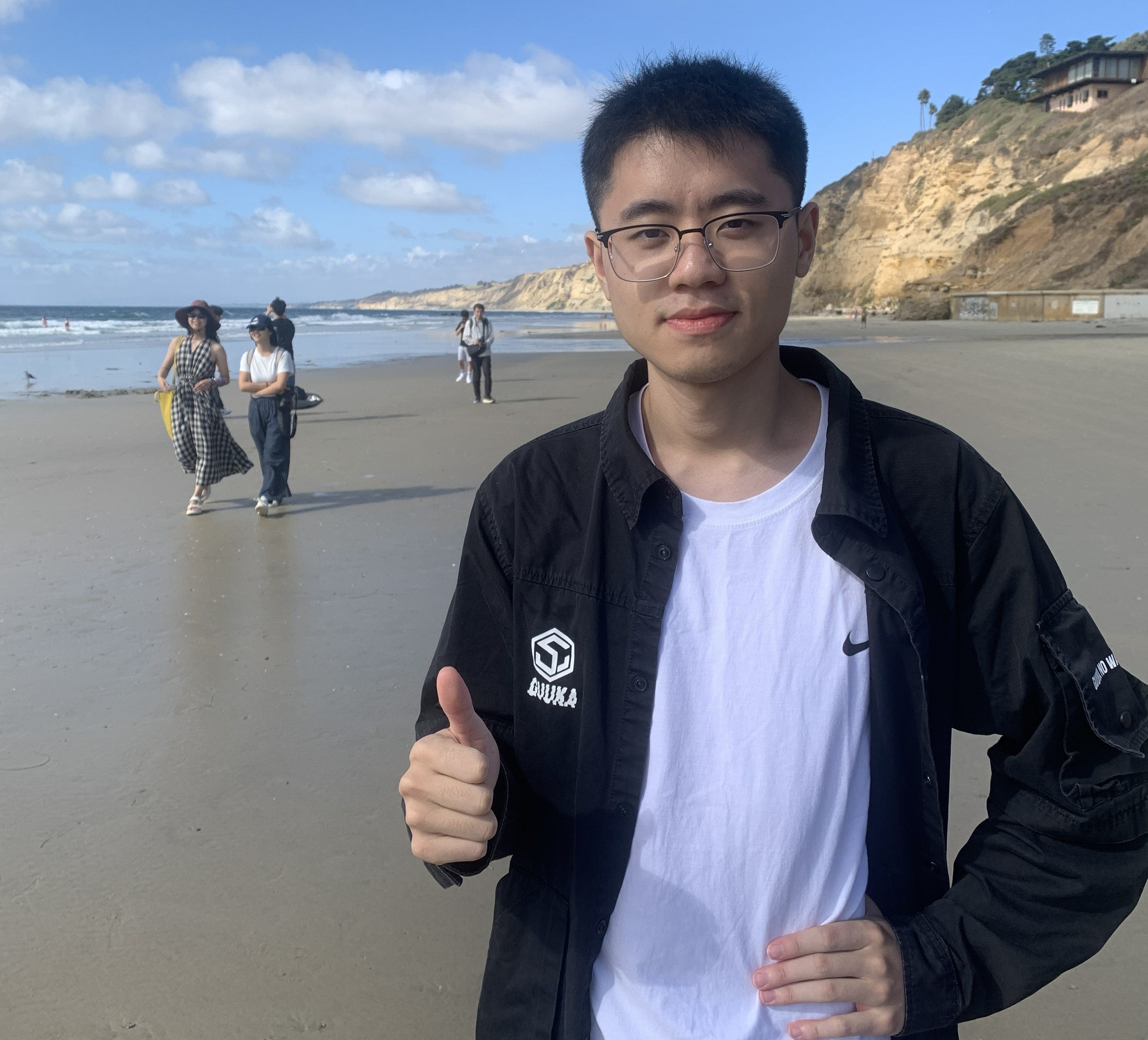 然后去了旁边的海滩,有一个打卡桥洞,似乎有些日期太阳能正好穿过。我非常喜欢这件外套,很可惜过一段时间我就把他搞丢了。