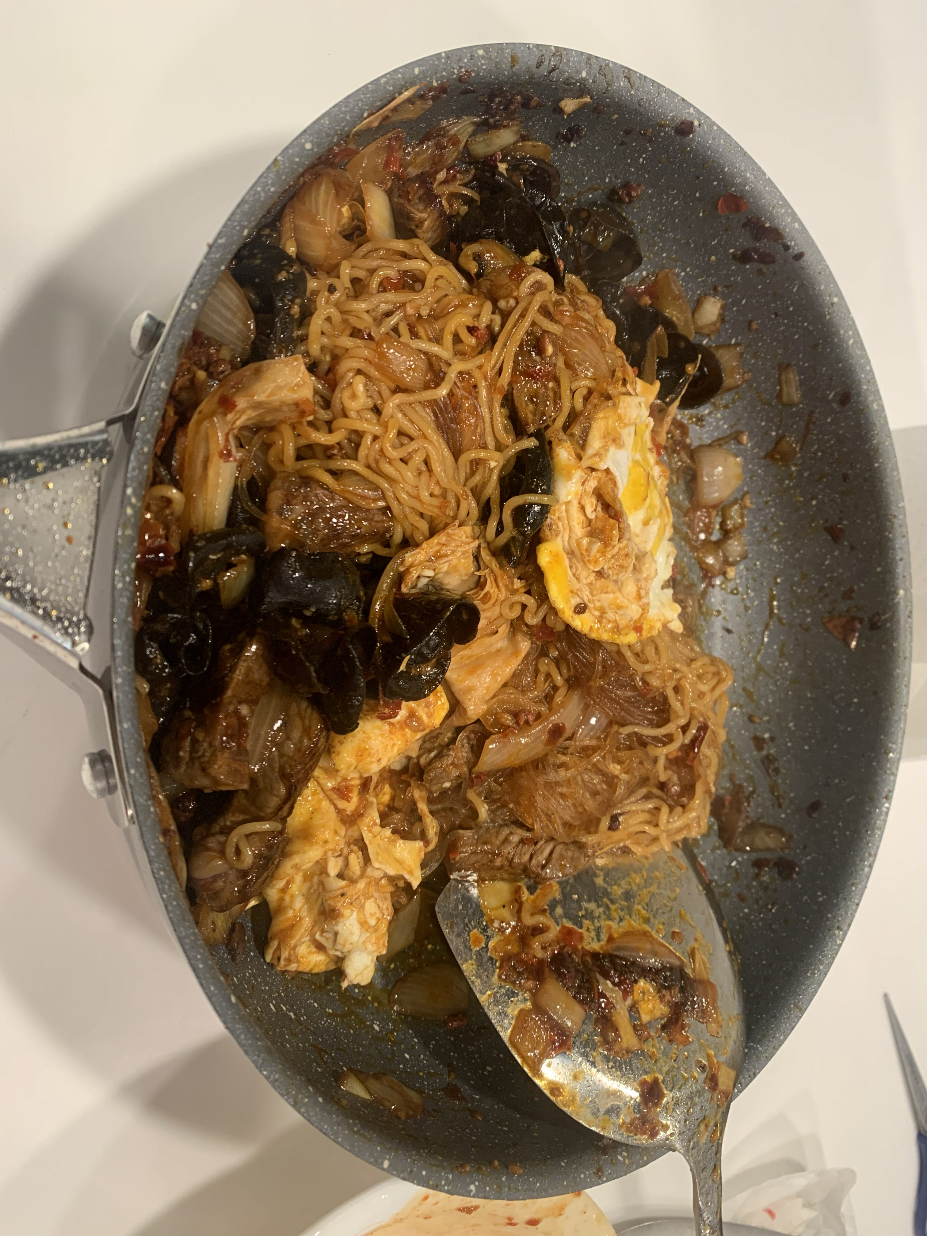 初期的料理水平非常拉跨。第一次和室友一起吃饭给他做了麻辣香锅,但豆瓣酱放多了,非常咸。感谢他还是吃了很多,也是非常有礼貌了。